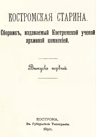 Труды комиссии издавались в сборнике “Костромская старина”. Всего вышло семь выпусков. Первый выпуск был издан в 1890 г., последний — в 1912 г. (*) Некоторые труды комиссии и ее членов выходили отдельными изданиями. В “Костромских губернских ведомостях” регулярно печатались “Журналы заседаний КГУАК”, которые затем перепечатывались отдельными брошюрами. В этих изданиях наряду с прочими материалами помещались довольно подробные отчеты о результатах археологических исследований [Журналы заседаний..., 1892-1905]. По анкетным запросам московского археологического общества в КГУАК поступают сведения об остатках древностей и старины в Костромской губернии, которые находят отражение в ряде публикаций [Миловидов И.В., 1890. С. 115-133; Новые сведения..., 1892. С. 56-70; Дополнительные сведения..., 1892. С. 71-81; Пирогов В.Г., 1890. С. 134-142; Херсонский И.К., 1890. С. 1-74; Преображенский И.И., 1897а, 18976 и др.].