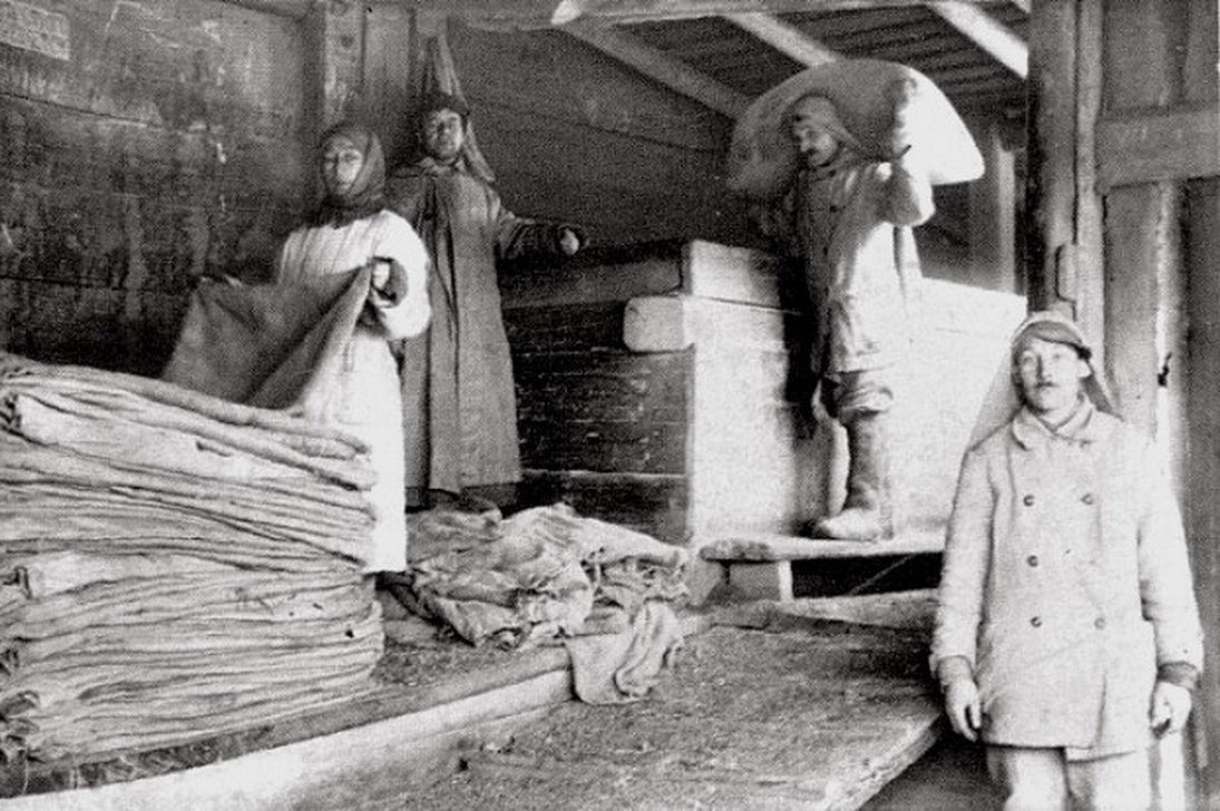 ...Из беседки открывается вид на все Заволжье, которое, несмотря на то, что там был железнодорожный вокзал, представляло из себя простую деревню, и только лишь на главной, Московской, улице было несколько каменных домов и складских помещений. По самому берегу Заволжья были проложены две параллельные линии железнодорожных путей для перевозки дров, кирпича и прочих грузов. Кругом видны густые березовые рощи, в тени которых костромские фабриканты Чумаковы, Зотовы и другие имели свои дачи. Никаких крупных производств в Заволжье не было. Население состояло из ломовых и легковых извозчиков, мелких кустарей, торговцев, железнодорожных рабочих и служащих, жителей соседнего села Селища, которые, кроме крестьянства и извоза, занимались сапожным промыслом, и их продукция высоко ценилась крестьянами за прочность и относительную доступность по цене.
