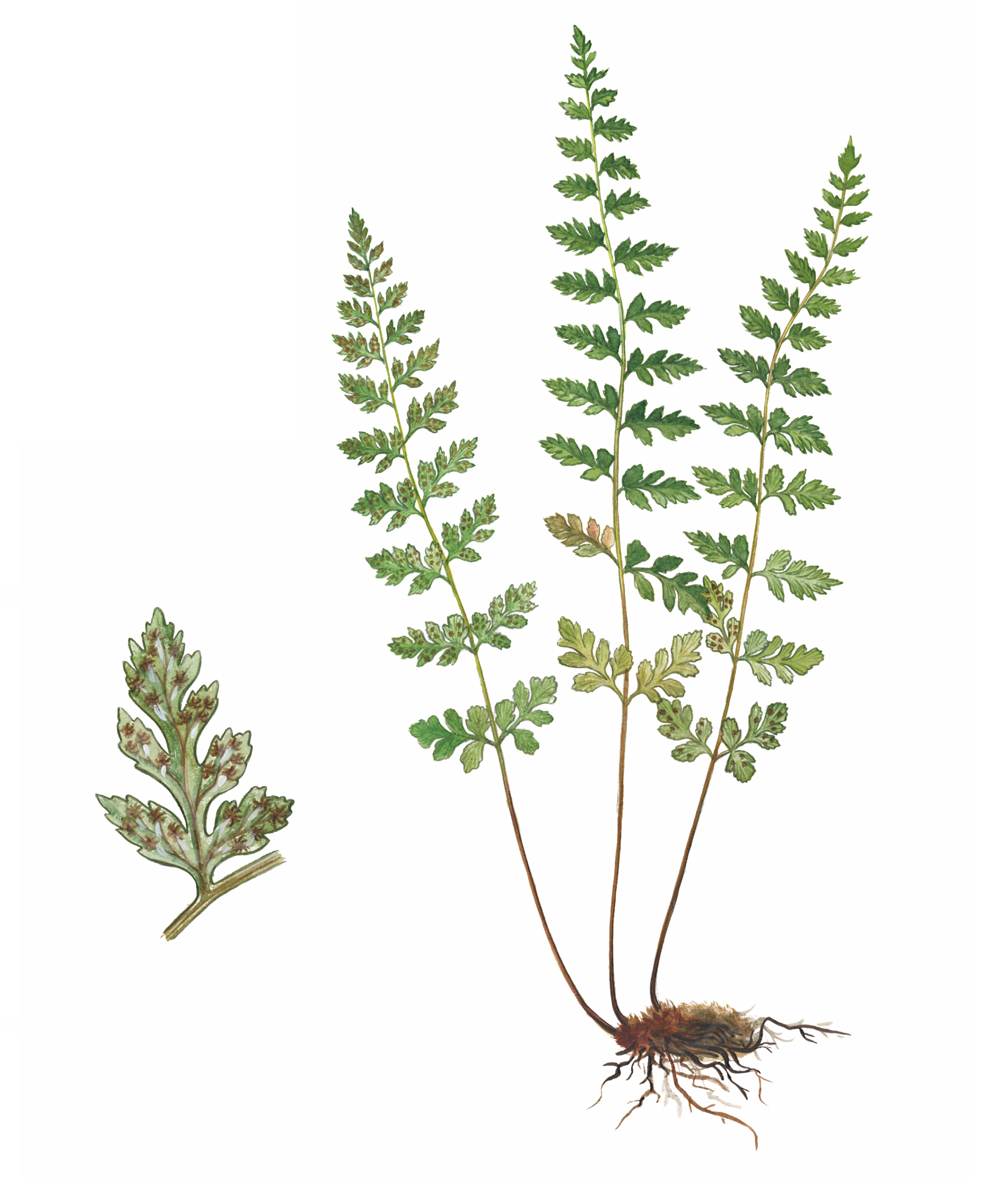В опубликованные списки охраняемых растений вошли в основном сосудистые растения и небольшая часть споровых, среди которых: папоротники (гроздовник полулунный и многораздельный, страусник обыкновенный, ужовник обыкновенный), четыре вида плаунов (баранец, годичный, сплюснутый, булавовидный).