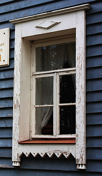 Высокий чердак над остальной частью здания с большим полукруглым окном на юг позволил сделать всю крышу на одном уровне, что способствует стройности и гармоничности архитектуры дома.