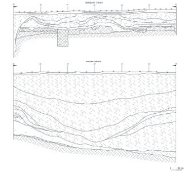 Объект № 1а (рис. 7–8), прорезающий в северной части объект № 1, свидетельствует о более позднем происхождении первого, возможно, он относится ко времени первого строительного периода.