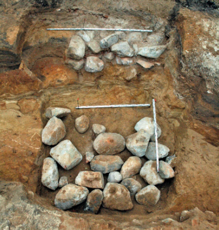 18 Глиняная забутовка, на наш взгляд, в придон- ной части фиксировала от сдвига нижние ярусы ва- лунной кладки, как бы распирая их, и не «давала» им смещаться.
